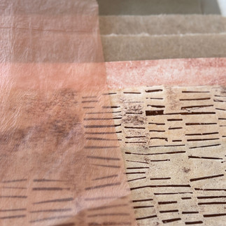 I have thouroughly enjoyed printing lots of new collage papers recently and am making some small block pieces. They are semi abstract works that make me feel like a cartographer, mapping the marks on farmland, using earth pigmented papers, which vary from opaque to translucent. More on that soon...